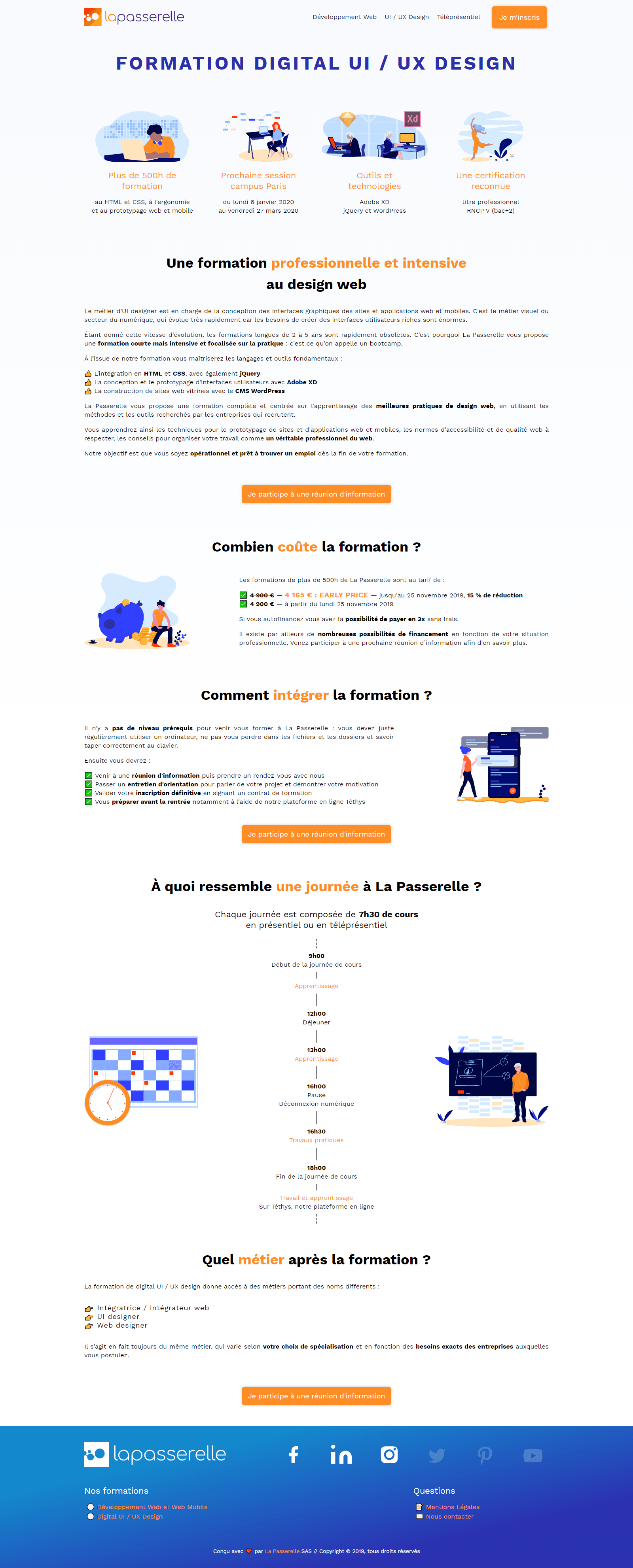 Lors de son lancement, j’ai participé au développement du site vitrine from scratch, sans framework ni CMS, afin de présenter les formations en développement web et en UI/UX design.