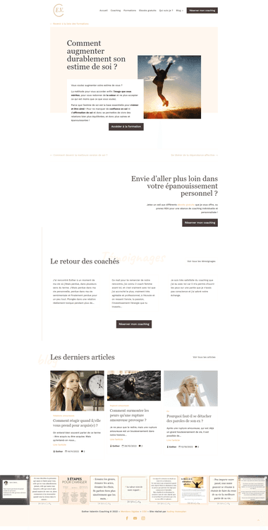 Esther avait besoin d’un site à la fois professionnel, complet et parfaitement aligné avec son activité de coach. L’enjeu était de créer une plateforme centrale où tout son écosystème digital pourrait vivre : ses accompagnements, ses ressources payantes, ses formations, son contenu éditorial et son système de prise de rendez-vous. L’objectif : valoriser son expertise, fluidifier son parcours client et soutenir sa stratégie commerciale.