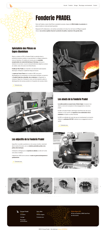 Site WordPress sur mesure pour la Fonderie Pradel, entreprise métallurgique historique spécialisée dans les pièces en cupro-aluminium. Design modernisé, storytelling industriel et mise en valeur d’un univers B2B complexe.